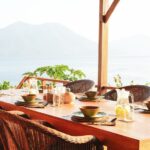 The dining area looks straight out over the Pantar Strait toward the old volcano islands of Ternate and Pura. We get to watch the sun drop behind Pantar island, every evening.